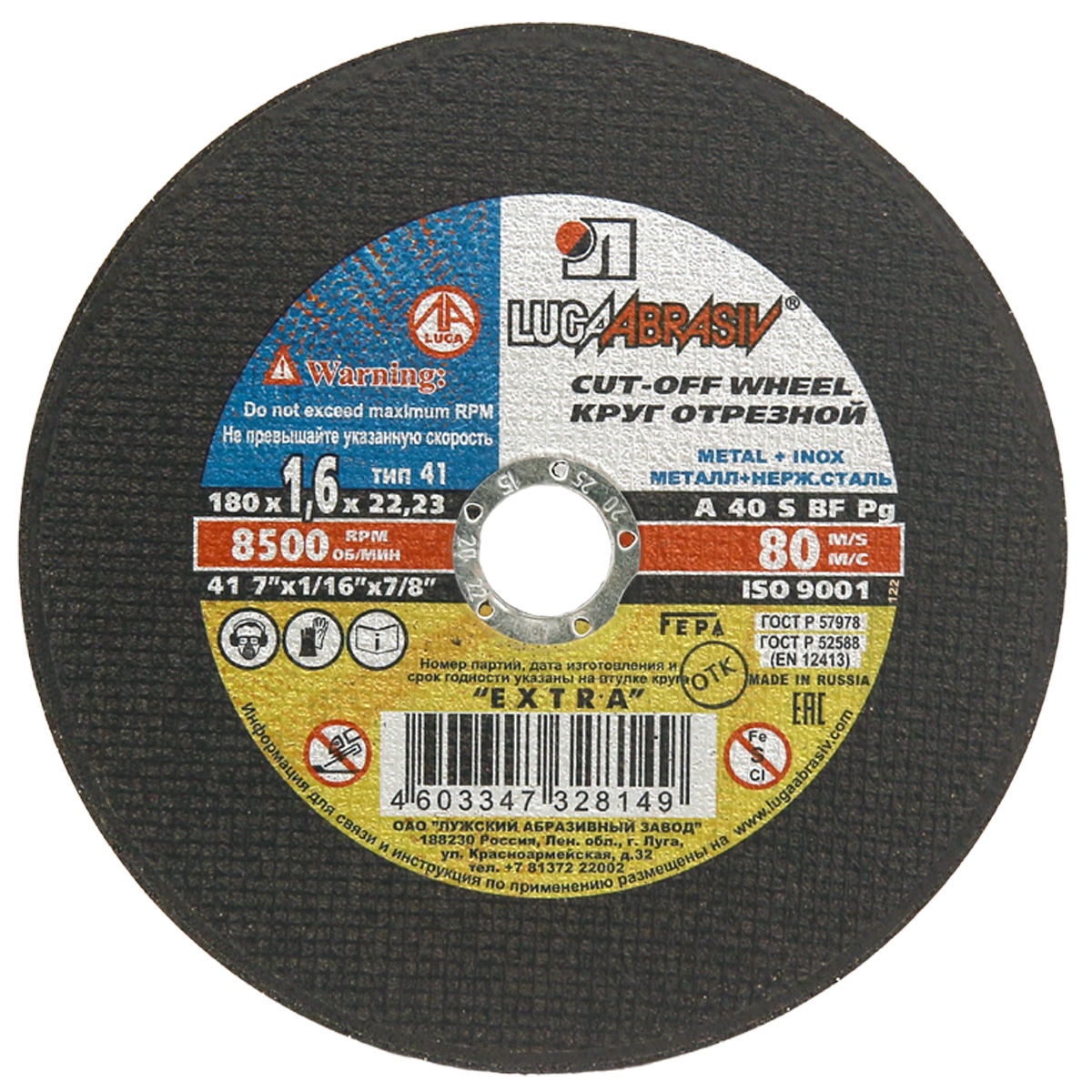 Отрезные круги Лужского абразивного завода изготавливаются по уникальной технологии, не имеющей аналогов в мире. Равномерное распределение массы и армирующего материала в круге, позволяет иметь низкий дисбаланс, повышенную эластичность и гибкость кругов, что важно при резании различных профильных материалов.